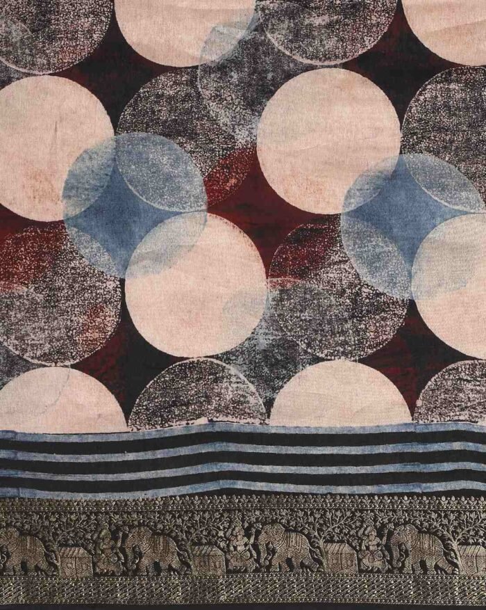 Handblock Bagru Print Handwoven Saree with Contrast Border
