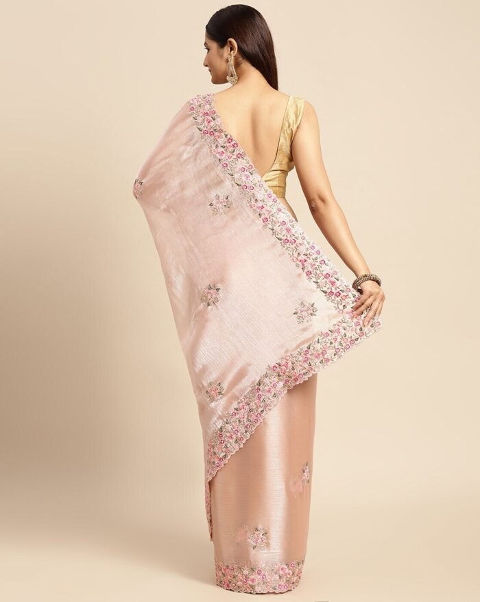 Mohey Peach Machine Resham & Zari Organza Saree Saree