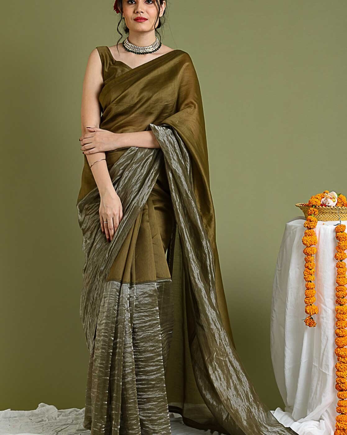 - The last image gives a detailed look of the blouse piece that comes with this saree (The model is wearing a blouse from our in-house wardrobe)