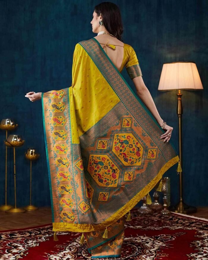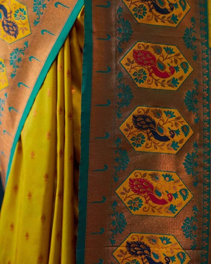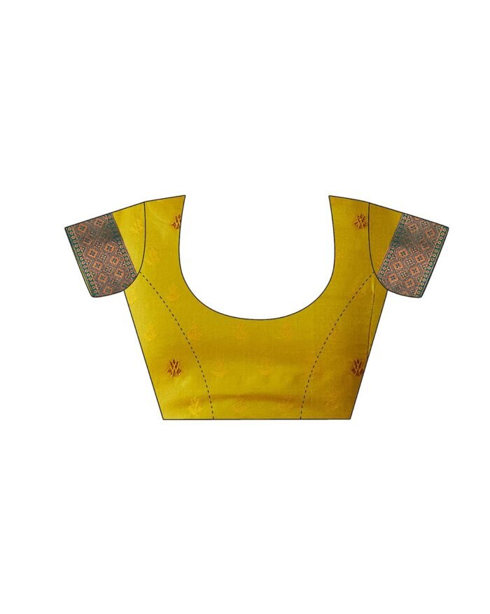 - Elevate your look with this eye-catching ensemble that exudes charm with every drape. This saree promises to make a statement with its bold yet graceful design.