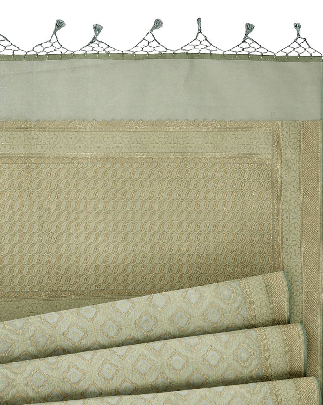 • The last image gives a detailed look of the blouse piece that comes with this saree (The model is wearing a blouse from our in-house wardrobe)