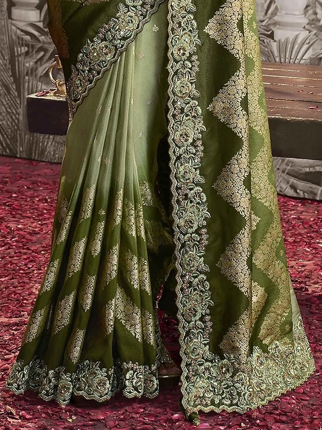Women’s Jacquard Silk Embroidery border work Saree with Heavy work Unstitch Blouse Piece